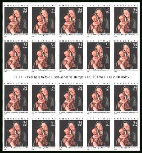 Booklet pane of 20 - Perforation 10.5 x 10.75 - Dated 2002